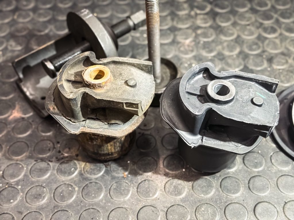 特にリアアクスルブッシュは走行距離10万キロ以下の低走行車両でも劣化してブッシュが千切れかけている個体がほとんどです。
