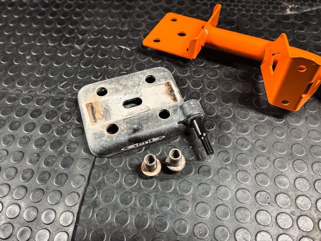 更にブラケットのショック取付根部分が盛り上がりスタビバーとの干渉がありましたのでその部分も加工!