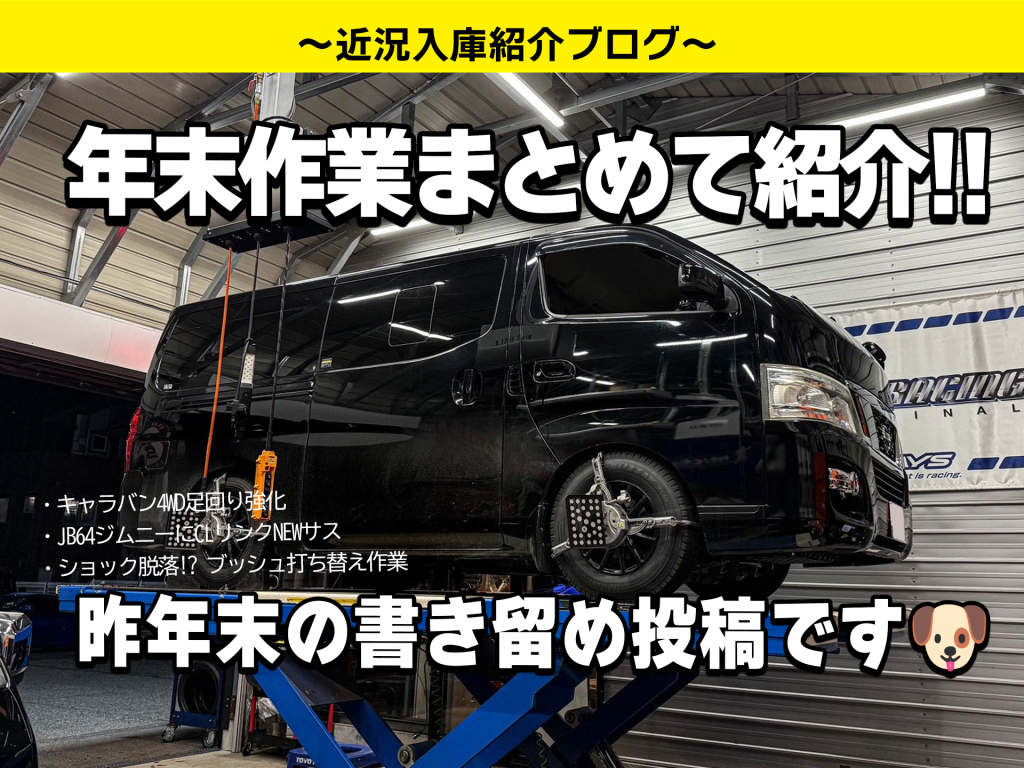 今回はローダウン済みの日産キャラバン4WD!常連さまの車両で今回は前後スタビライザー、フロントタイロッドエンド、エアクリーナーを交換