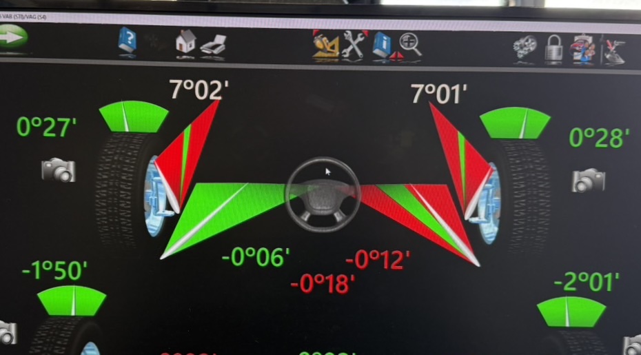 ちなみに入庫時のキャンバー角に違和感がありまず最初にアライメント測定してみたところ、フロントキャンバーがポジティブ側に約30分になっていました🫥
