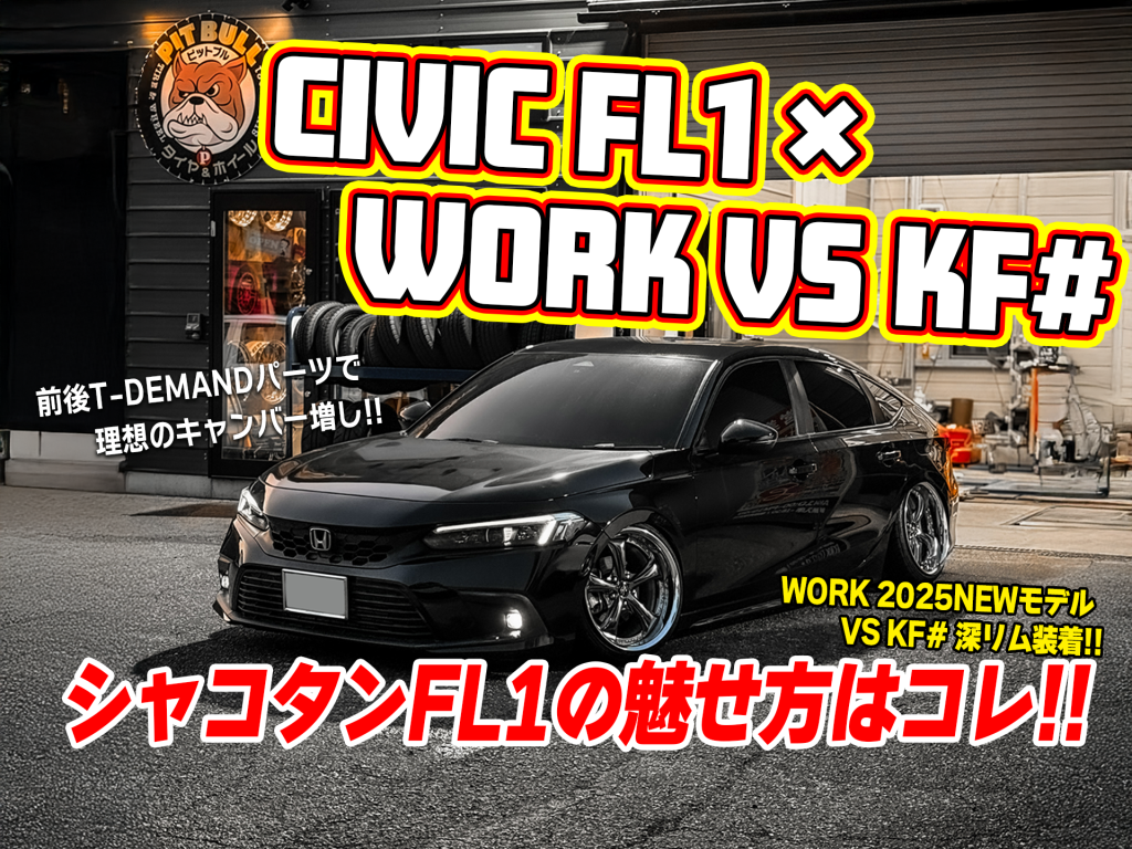 CIVIC FL1 × WORK VS KF# シャコタンキャンバースタイル! シビックFL1完成!!|タイヤ&ホイール PIT BULL